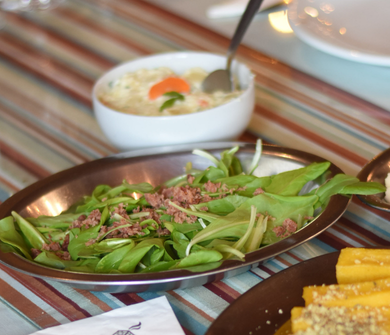 O menarosto expressa o rito da celebração. A sopa de agnolini traduz acolhimento e memória. O tortéi, a polenta, o queijo frito, o pien, a carne lessa e o radicci compõem uma cozinha de textura, afeto e identidade. Os embutidos, os pães e os queijos reforçam o elo entre artesanalidade e hospitalidade. E os vinhos (espumantes, brancos, rosés e tintos) encontram nesse repertório um ambiente ideal para mostrar sua vocação de mesa.